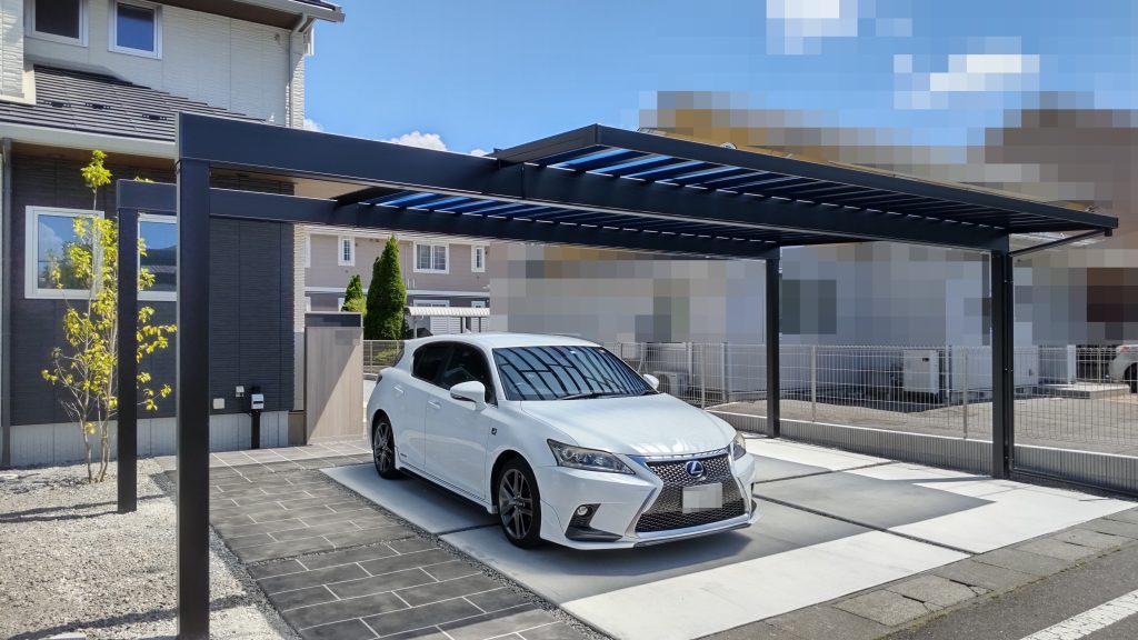 既存のアプローチと駐車場にカーポートを設置させていただきました。