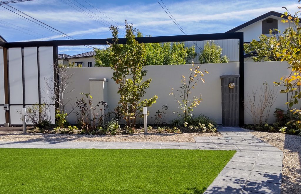 回遊式の園路に人工芝の広場でメンテナンスフリーに。