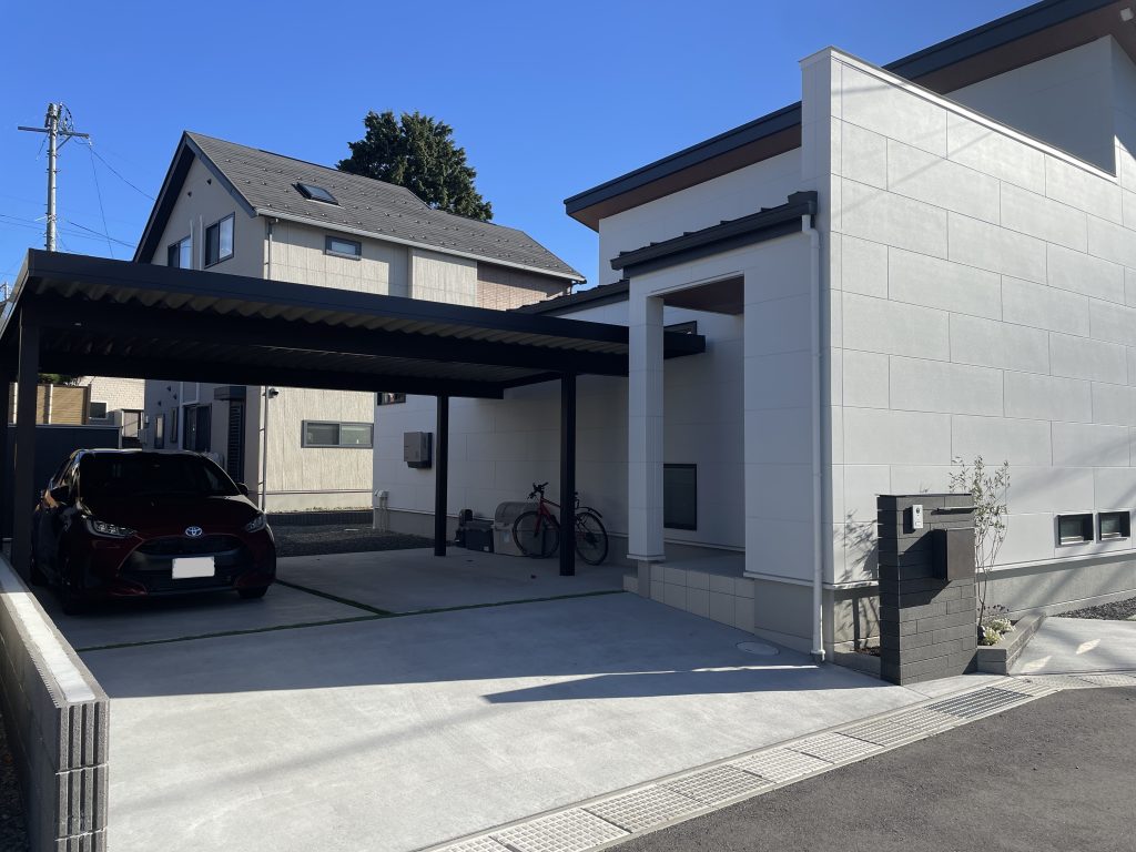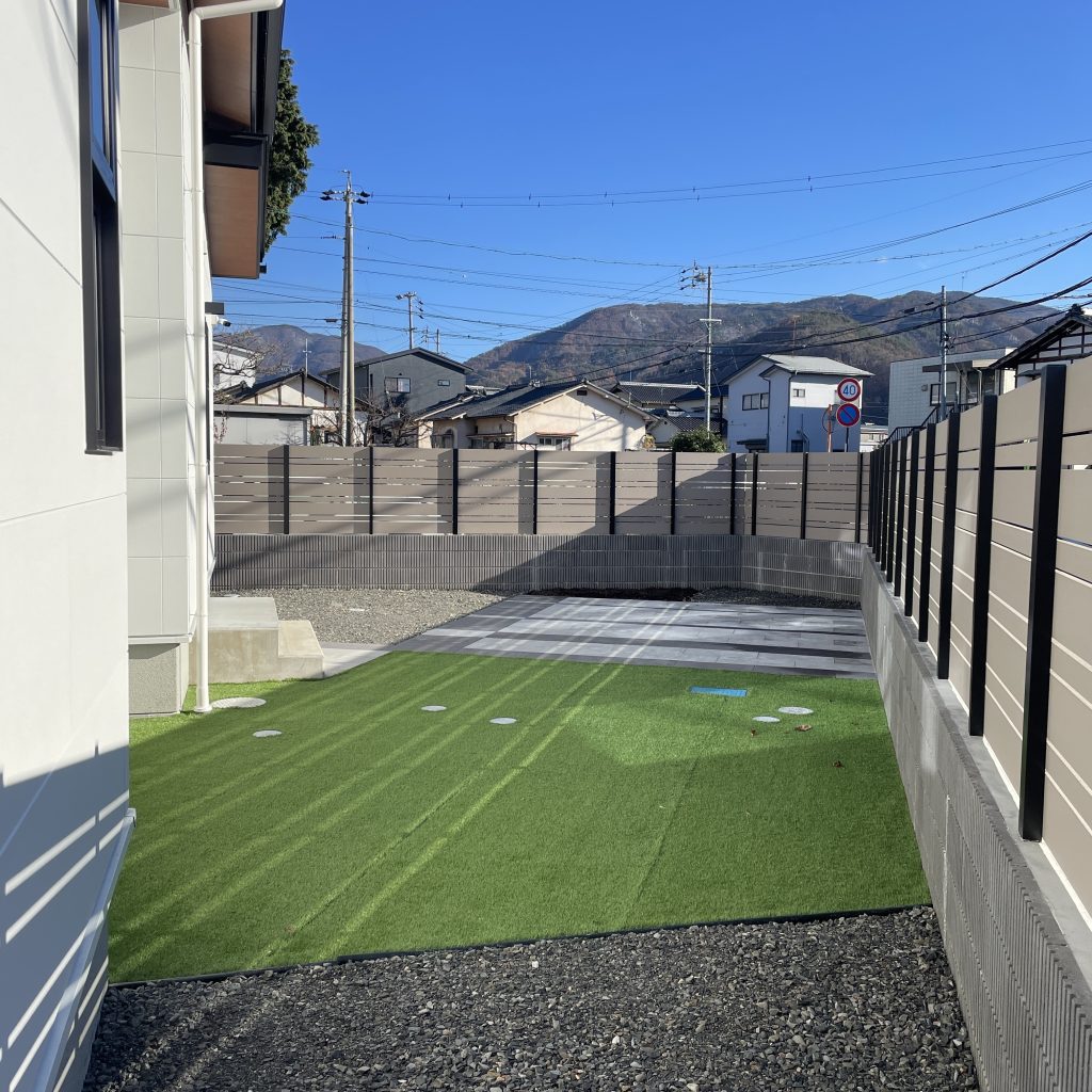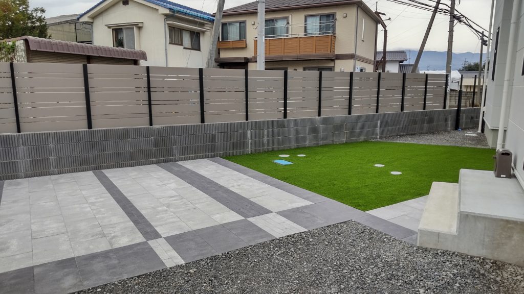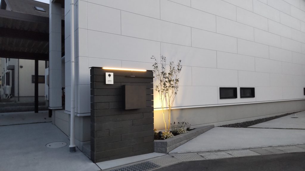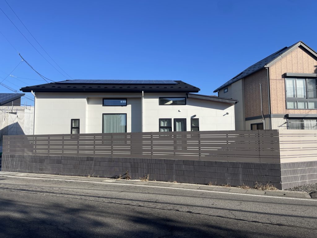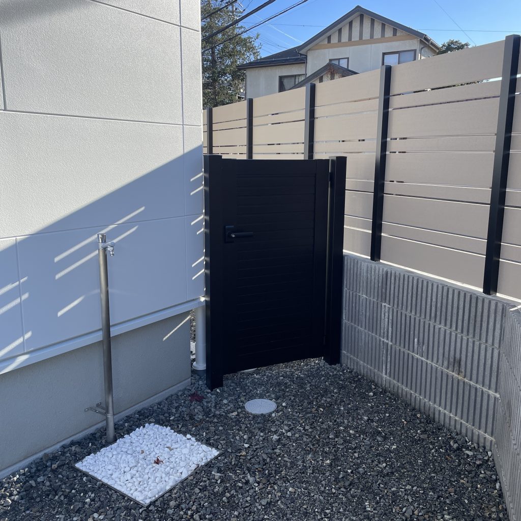 道路側のフェンスはグレージュ色で柔らかい印象に