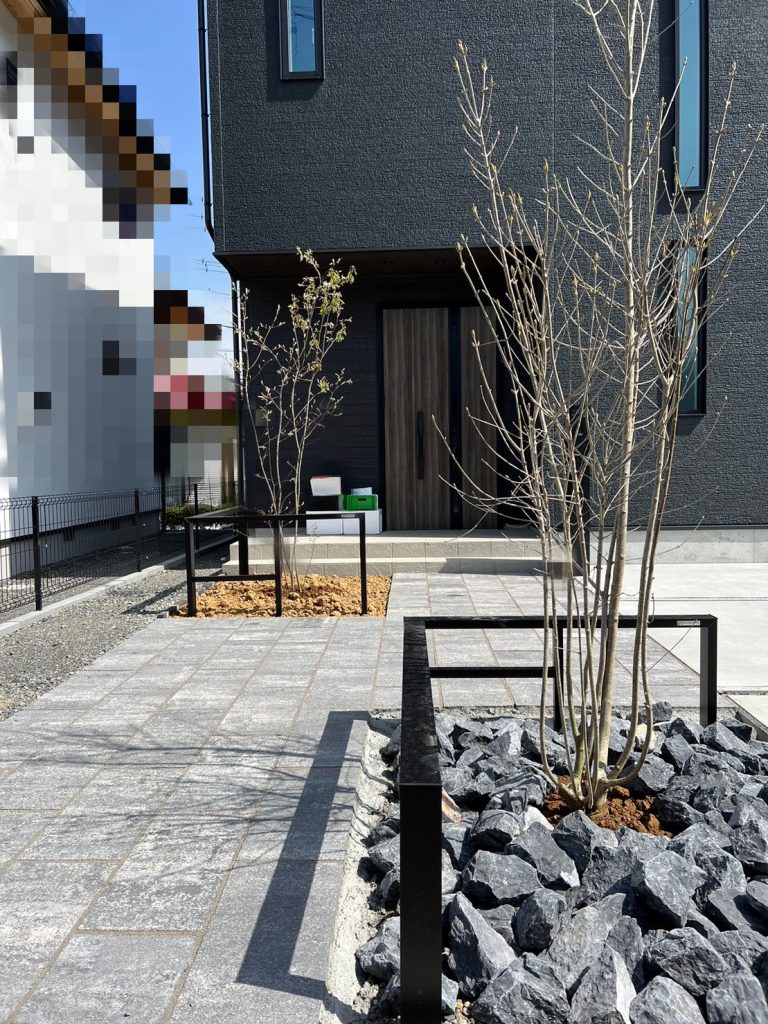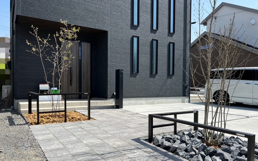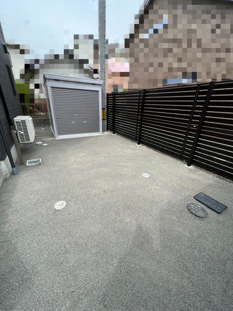 お隣からの視線を遮る目隠しフェンスとバイク庫を設置