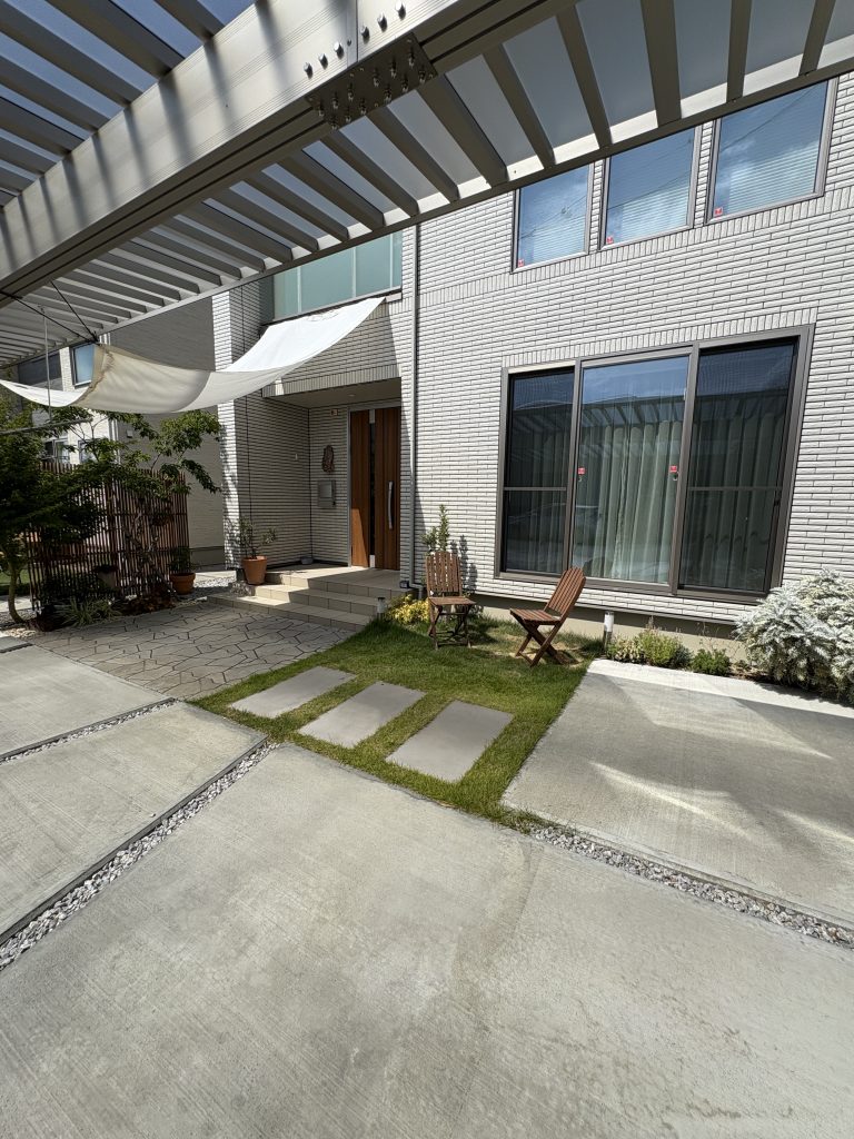 建物と調和する、シンプルな外構デザイン