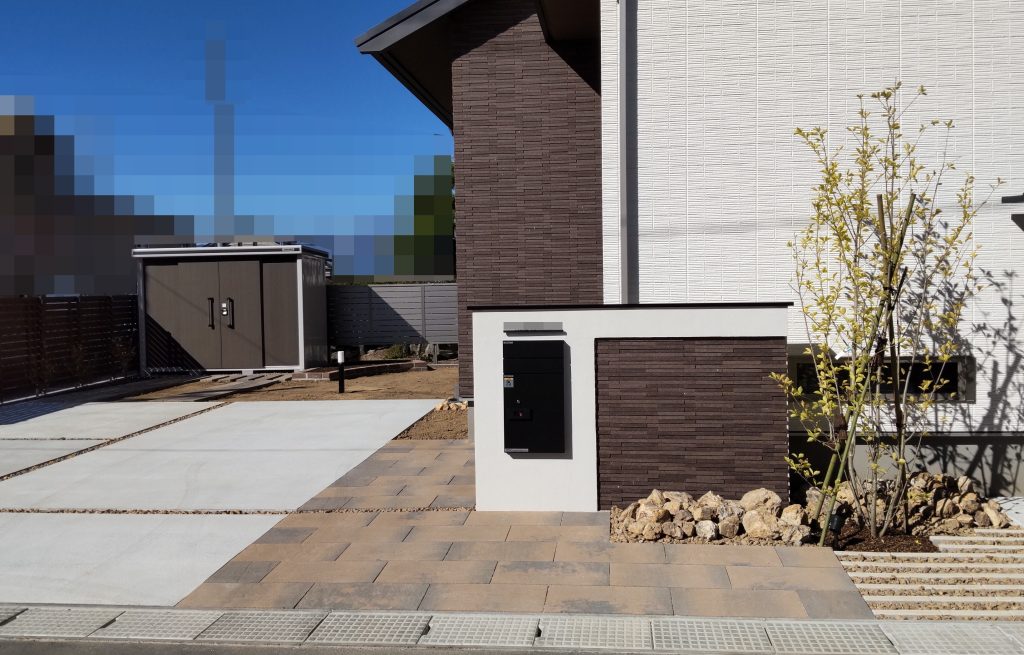 通路部分は緑化インターロッキングと化粧砂利で歩きやすくかつ美しいアクセントにしています。