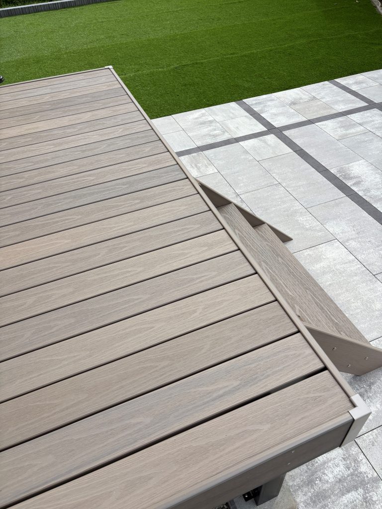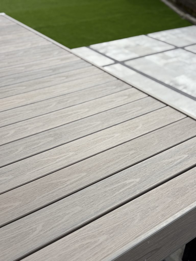 リアルな木目と落ち着いた色合いが外観に馴染み