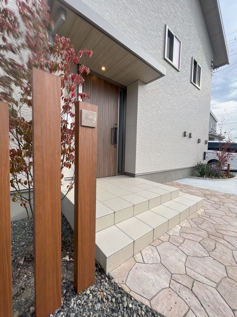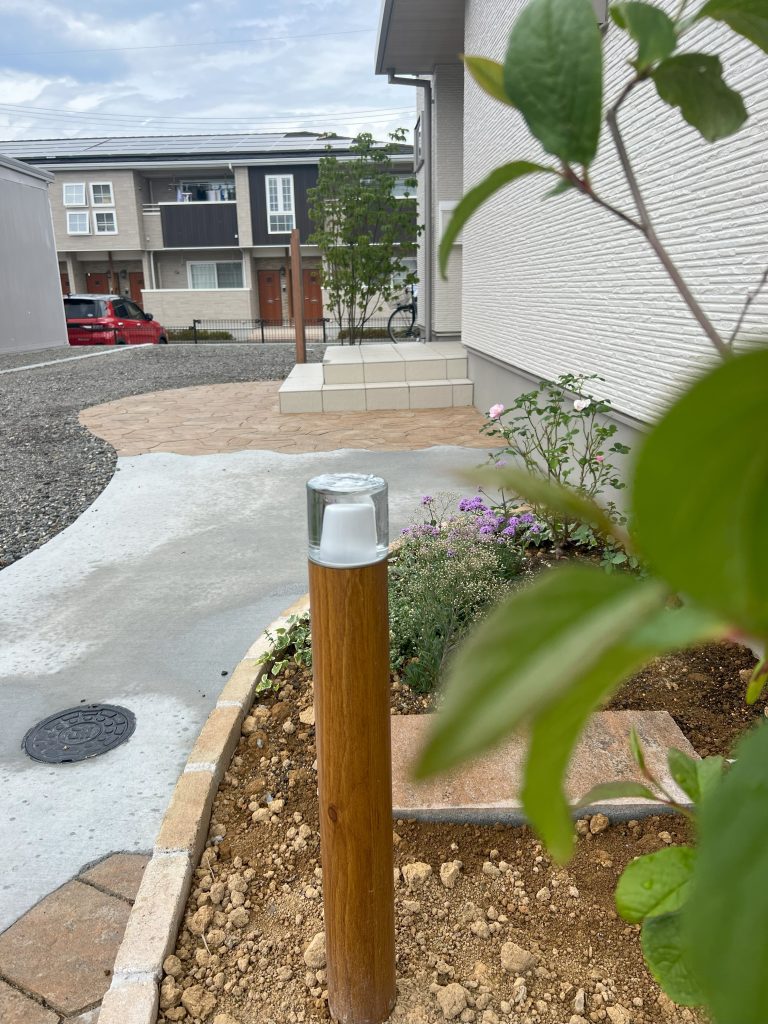 ポールライトは木目調にし、アクセントポールに合わせました。