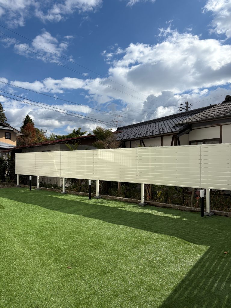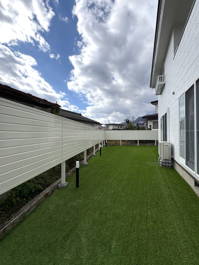お客様ご自身がDIYで敷かれた人工芝が広がり