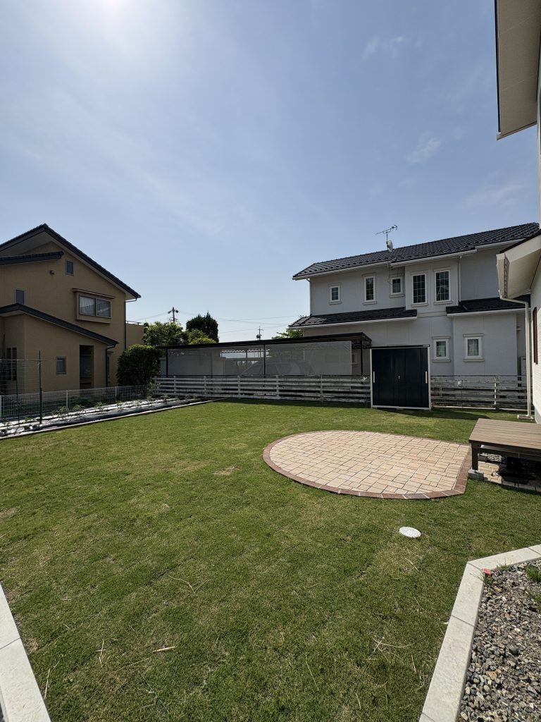 広々とした天然芝のお庭はお子様が駆け回り、自然と家族の笑顔があふれる空間