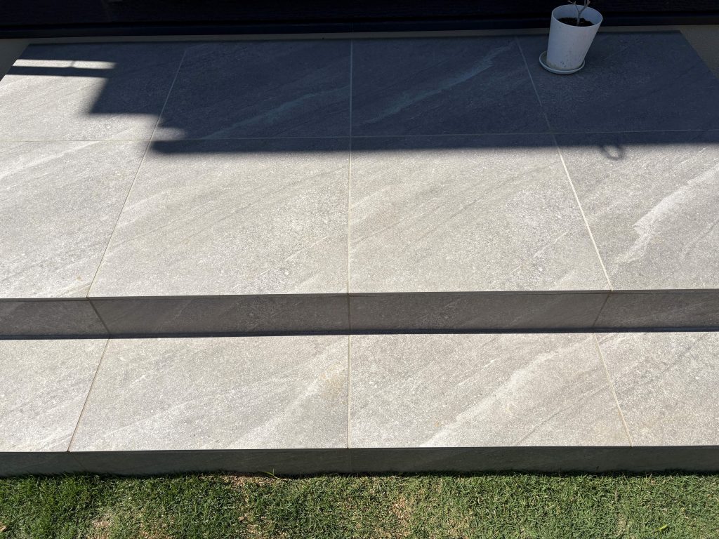 テラスにはお客様のご要望で大判のタイルデッキを施工。