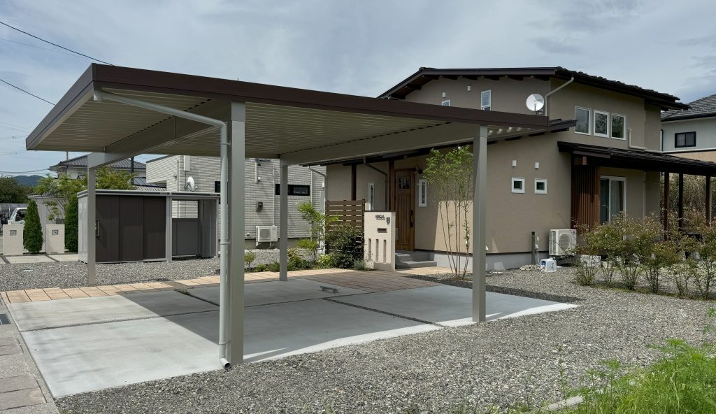カーポート、フェンス、土間コンクリート、植栽の追加工事をお任せいただきました。