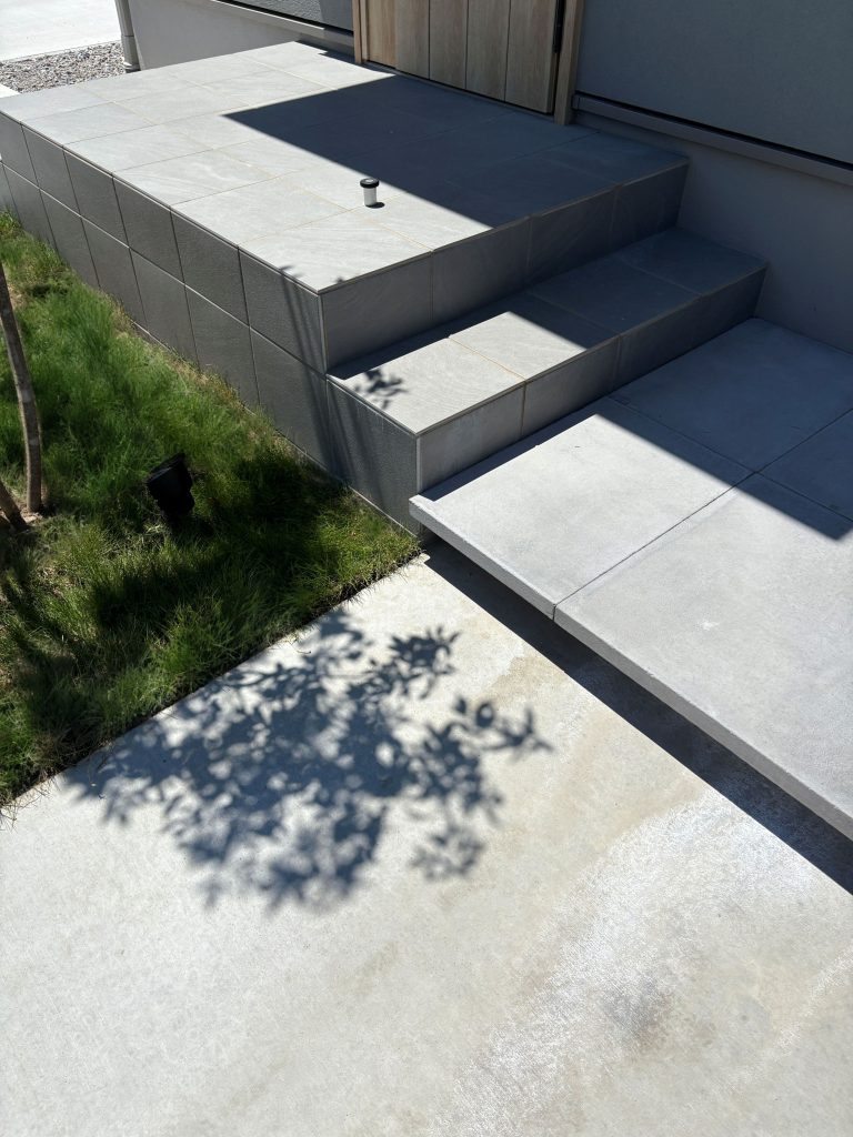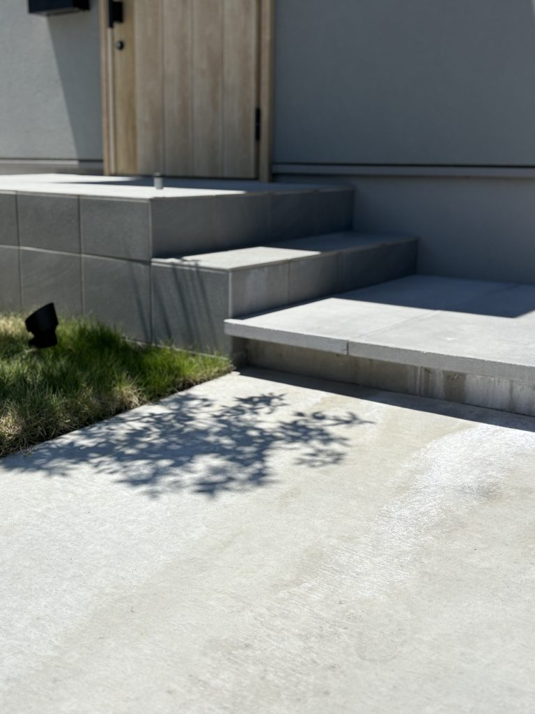 アプローチには浮遊感のあるフロートステップでデザイン。